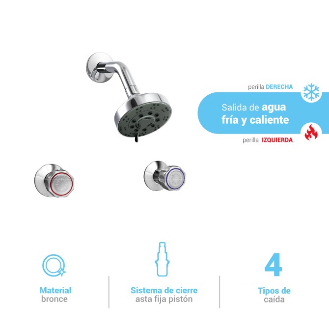 » Grifería con acabado Duracrom con brazo y salida de ducha con jets anticalcareos de facil limpieza